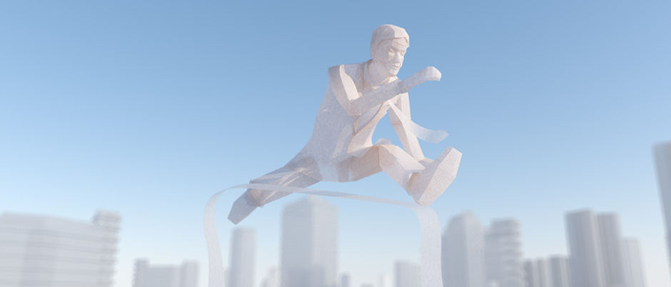 Die Idee war, den Hürdenlauf, als eine der anspruchsvollsten Disziplinen der Leichtathletik, auf das Forderungsmanagement zu übertragen. Sowohl visuell als auch inhaltlich bestimmt das Bild des Hürdenlaufs die Publikation. Charakteristisch dabei sind die dreidimensional animierten Papierfiguren, die eine hohe Aufmerksamkeit erreichen.